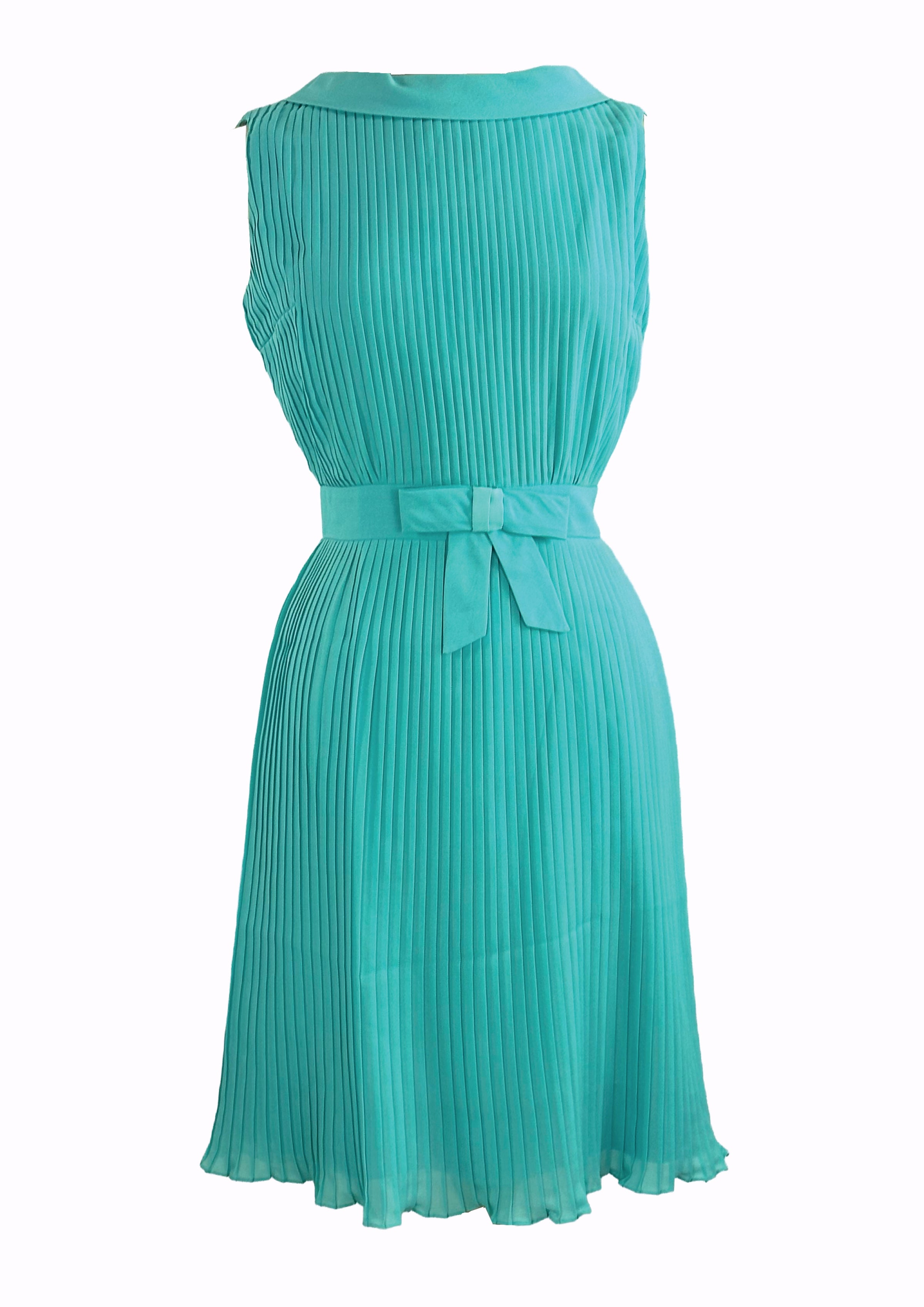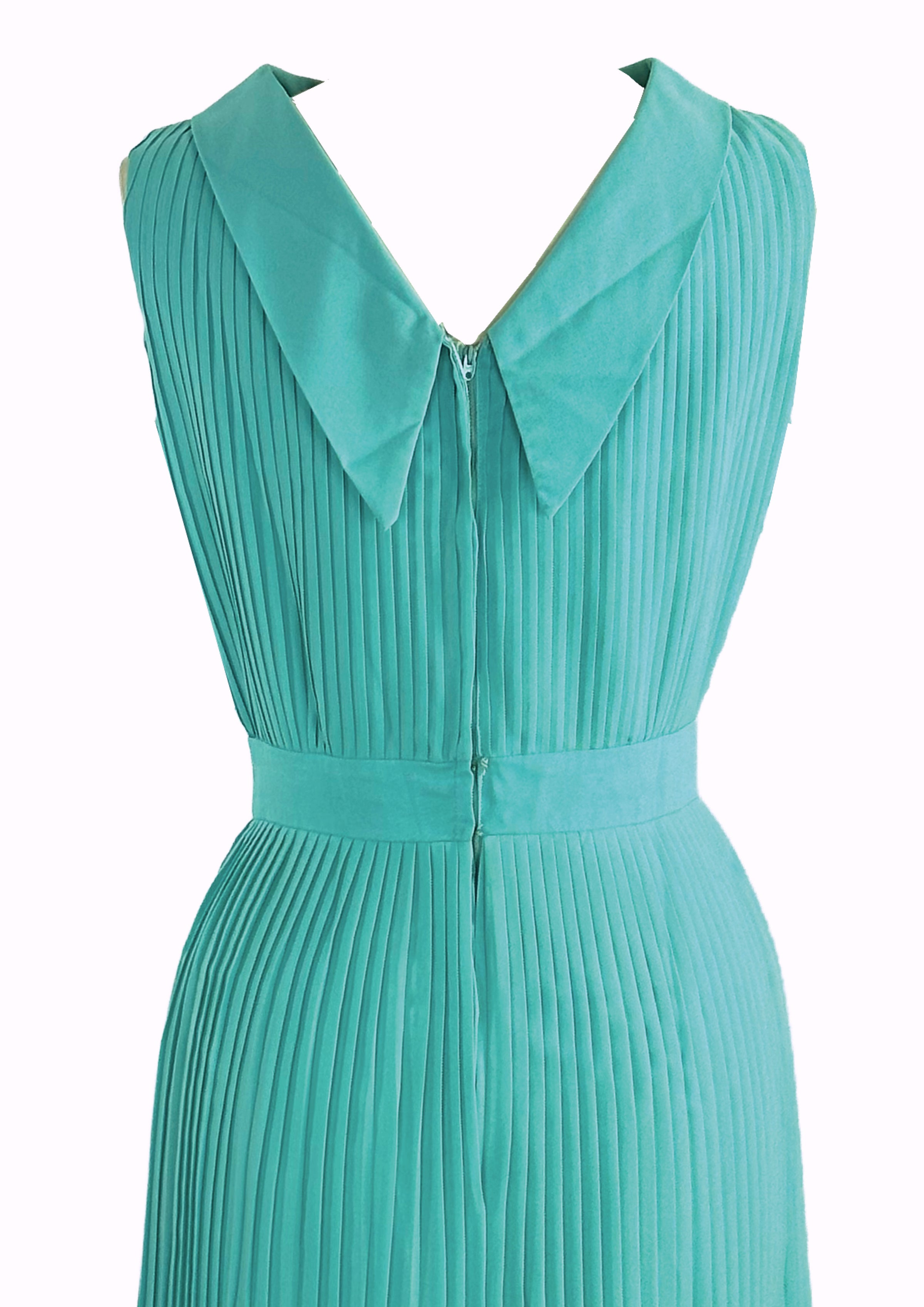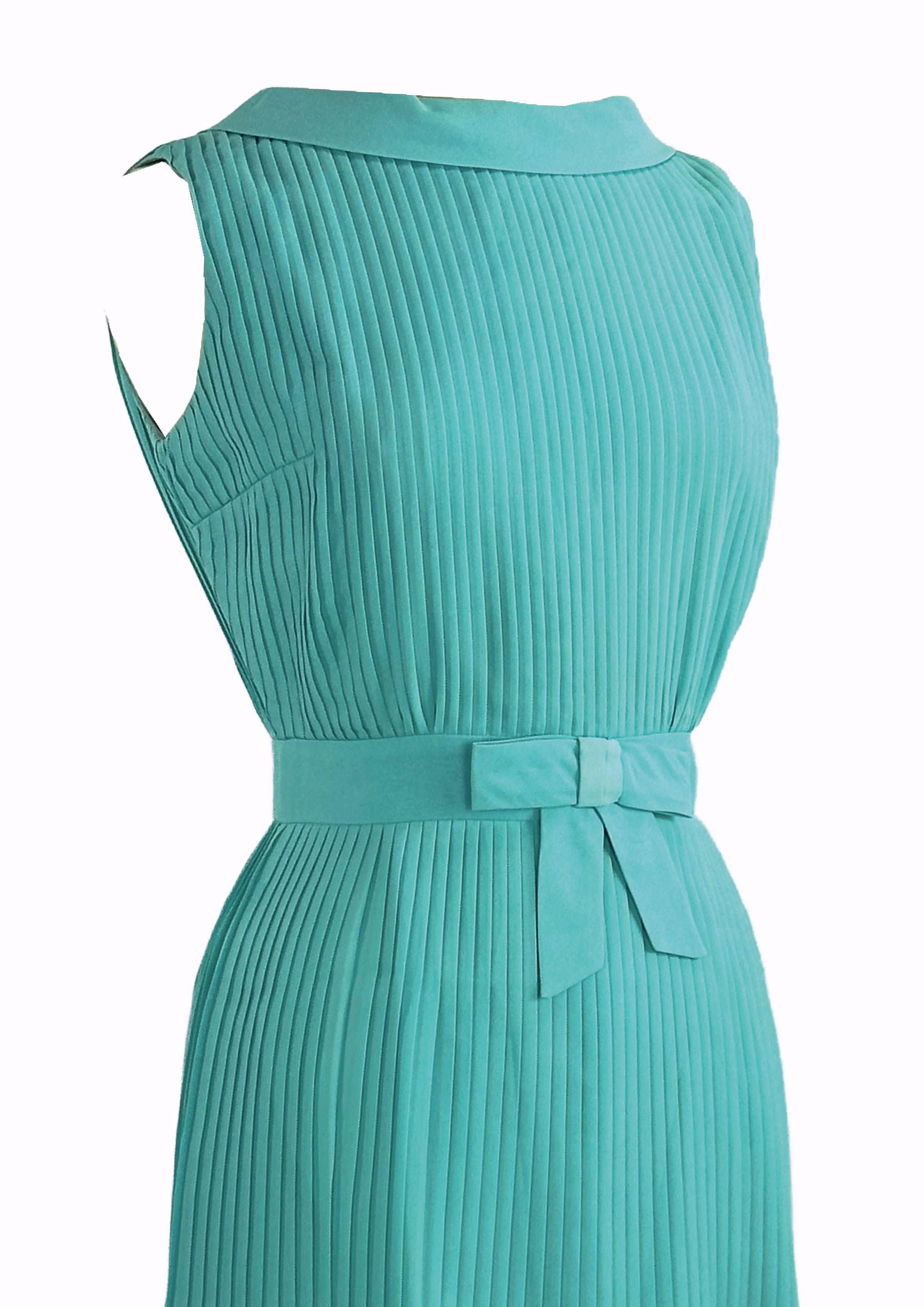 Vintage Early 1960s Aquamarine Blue Sunray Pleated Dress - New!