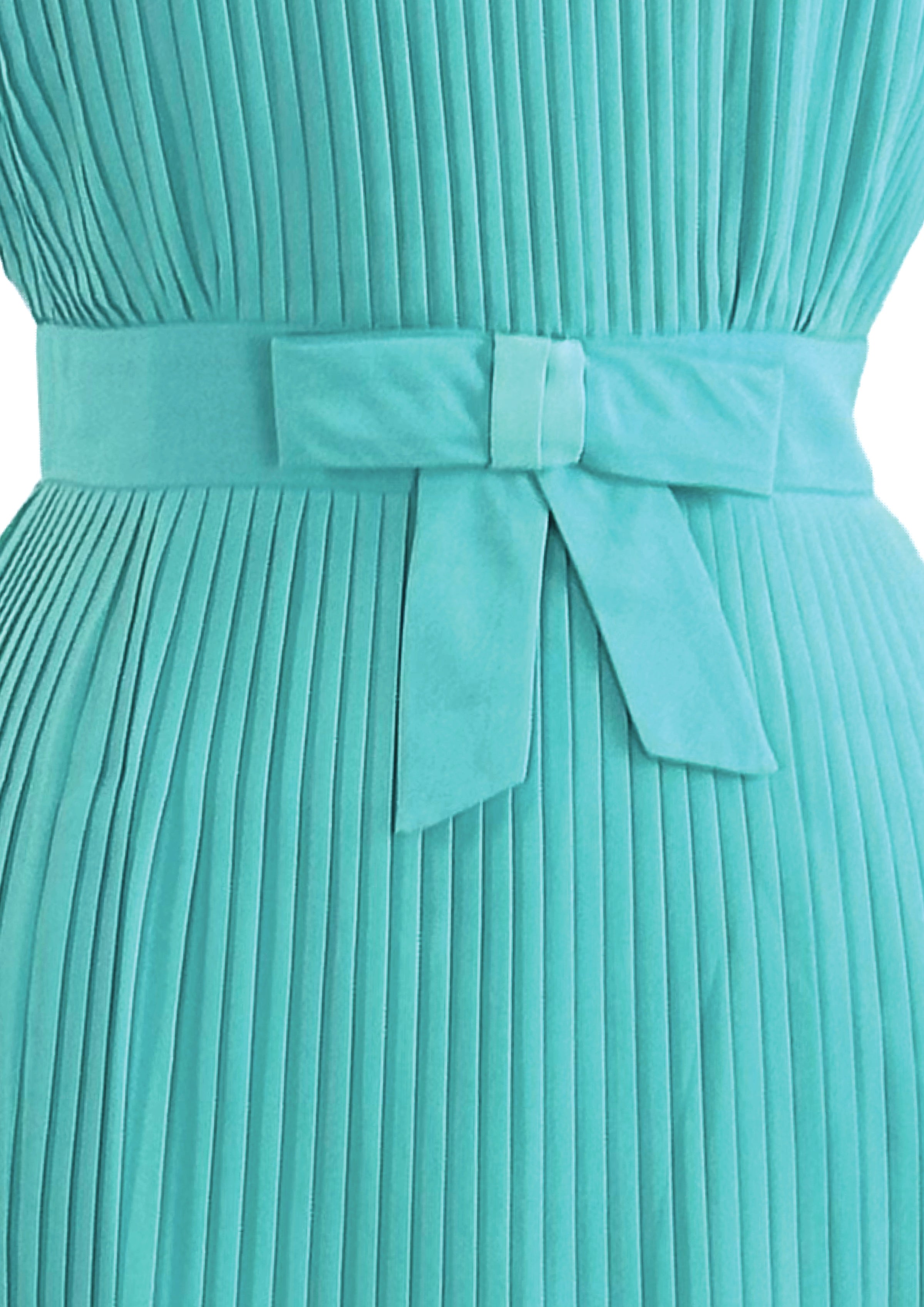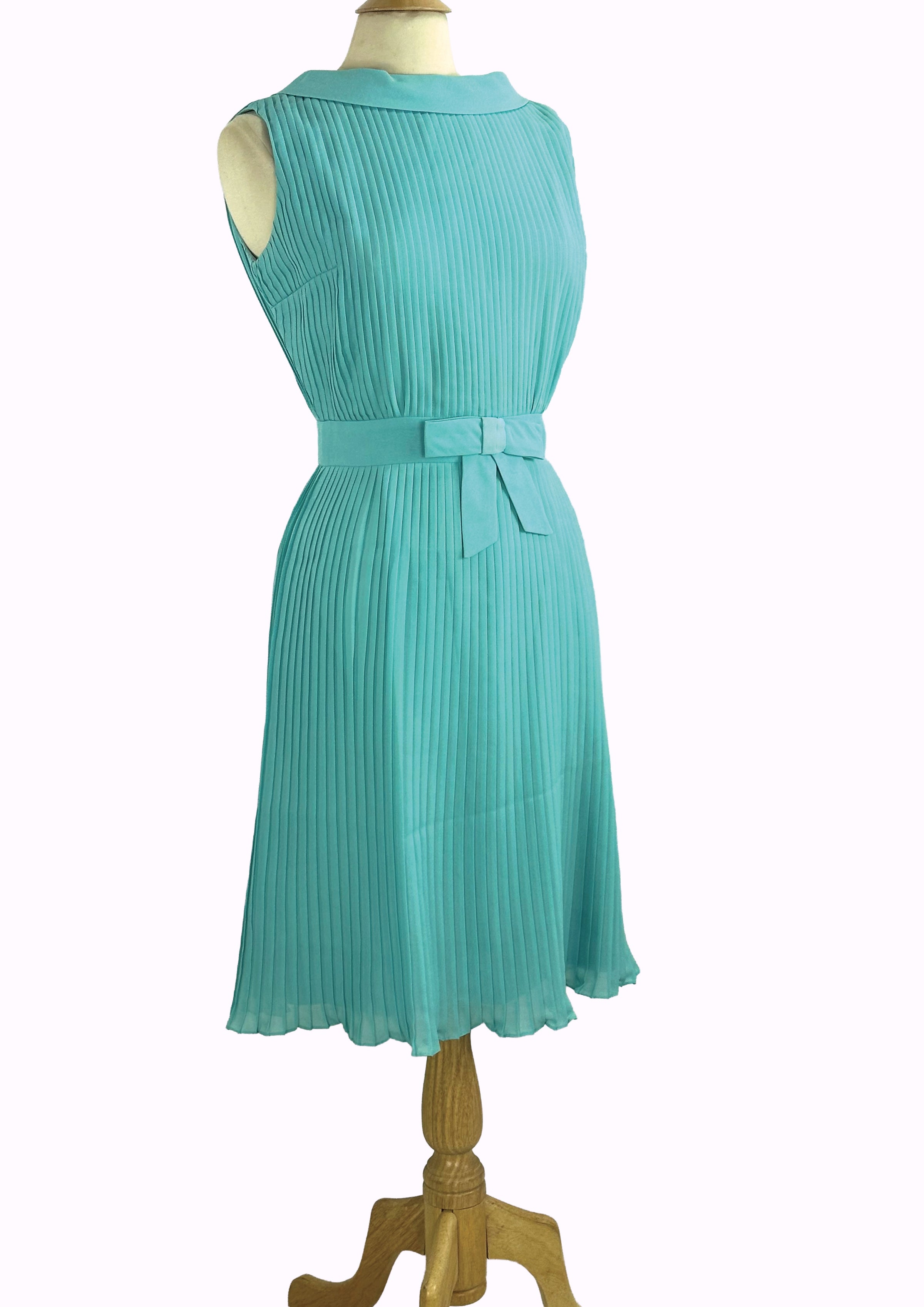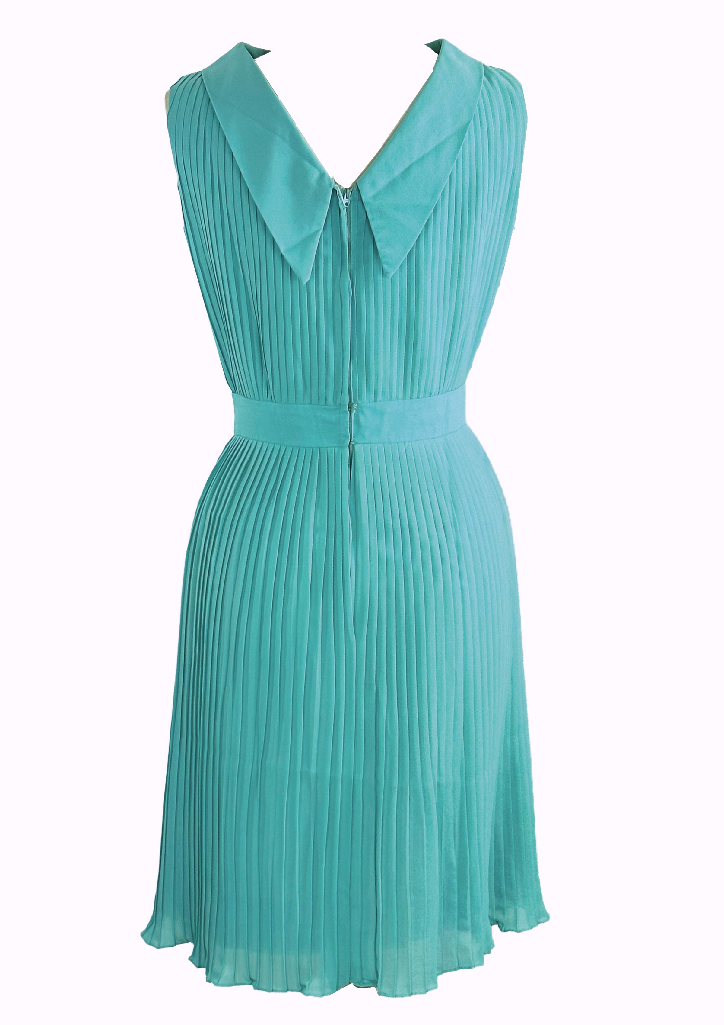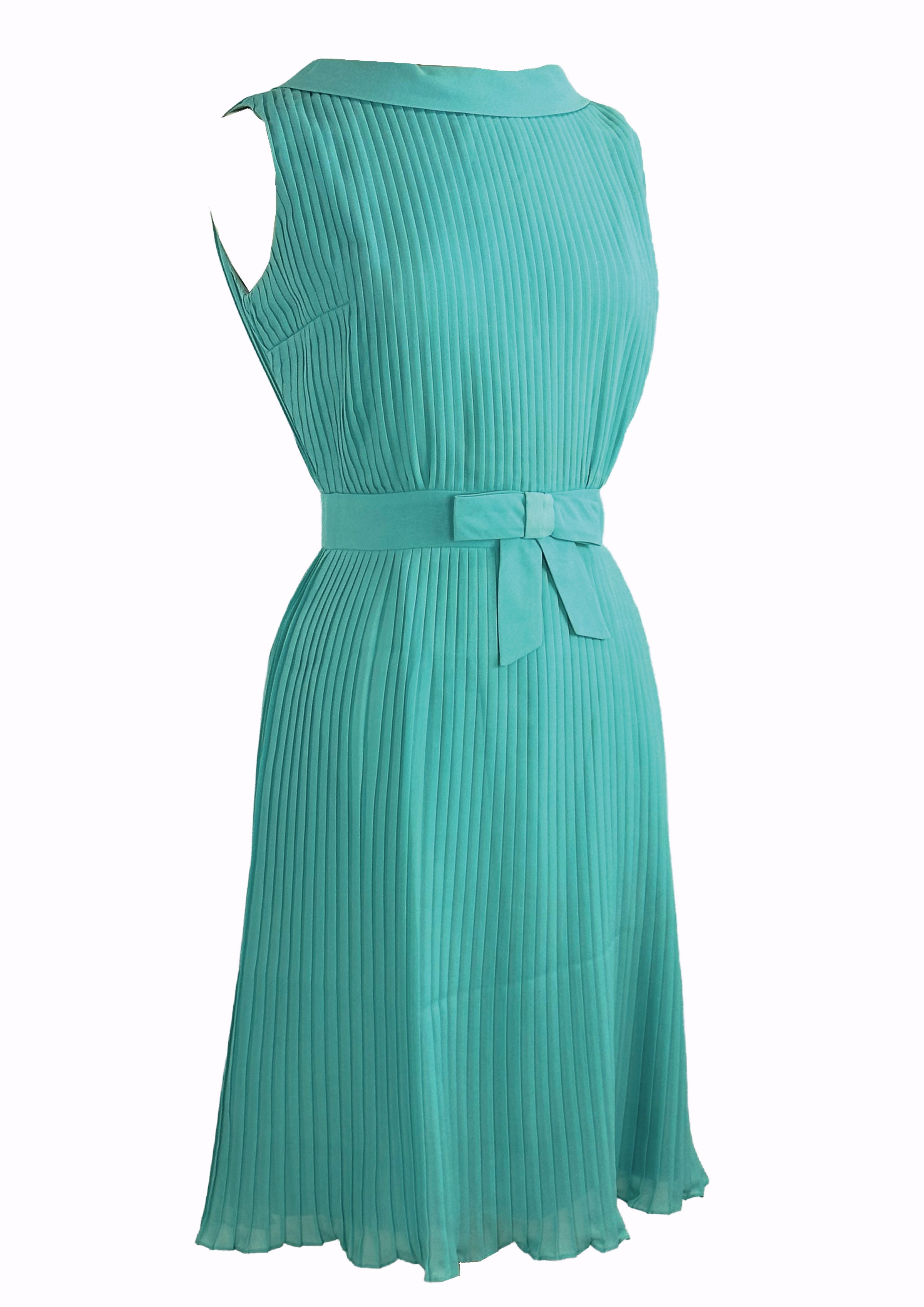 Vintage Early 1960s Aquamarine Blue Sunray Pleated Dress - New!