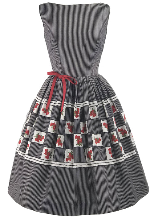 Early 1960s Pink Roses on White Pique Cotton Dress- New!