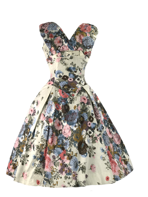 Knockout 1950s Magenta Roses Cotton Dress - New!