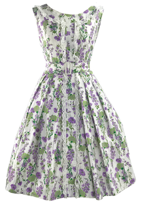 1950s Cotton Dress with Lavender & Sage Green Flowers - New!