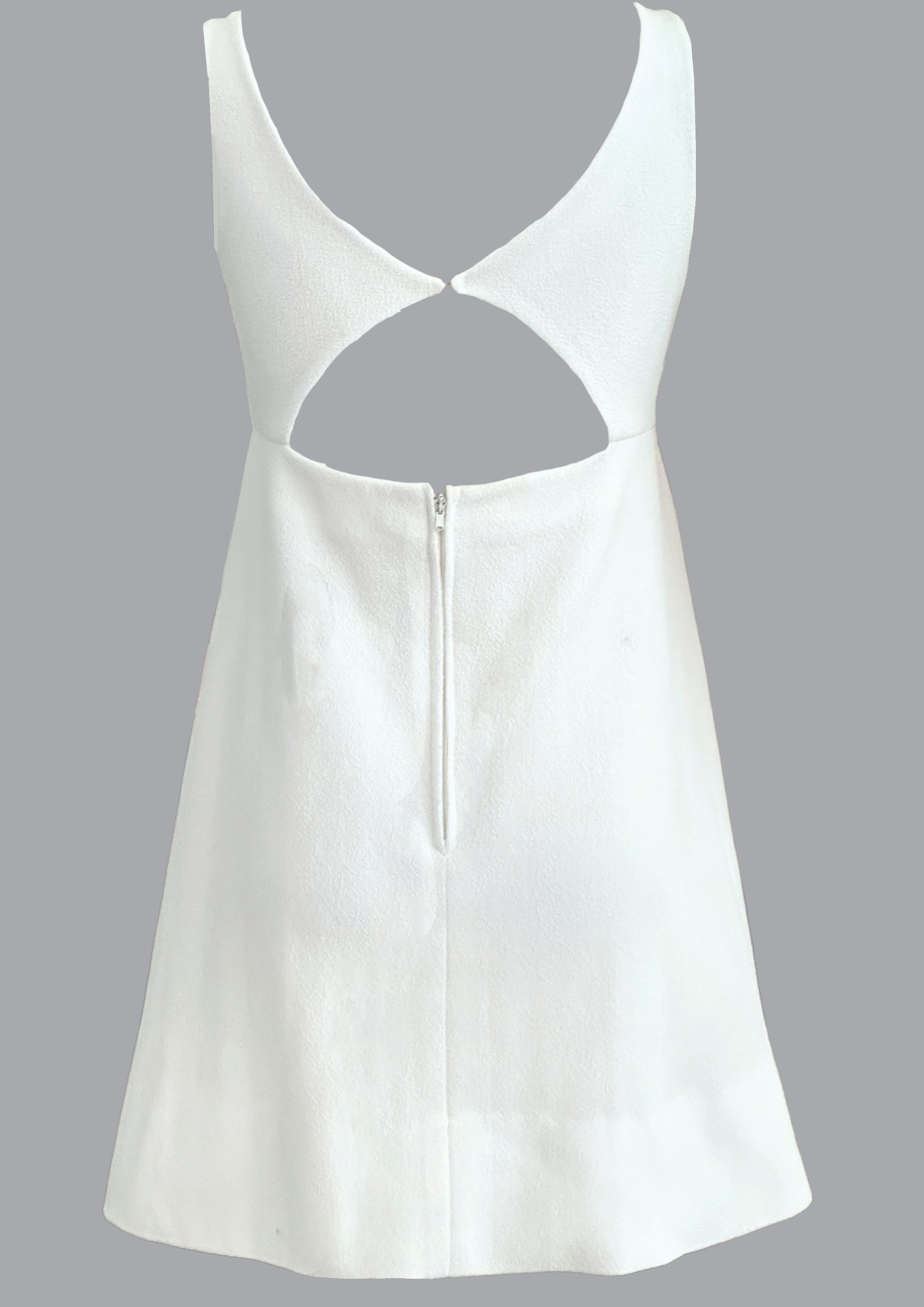 Late 1960s White Crepe Keyhole Mini Dress - New!