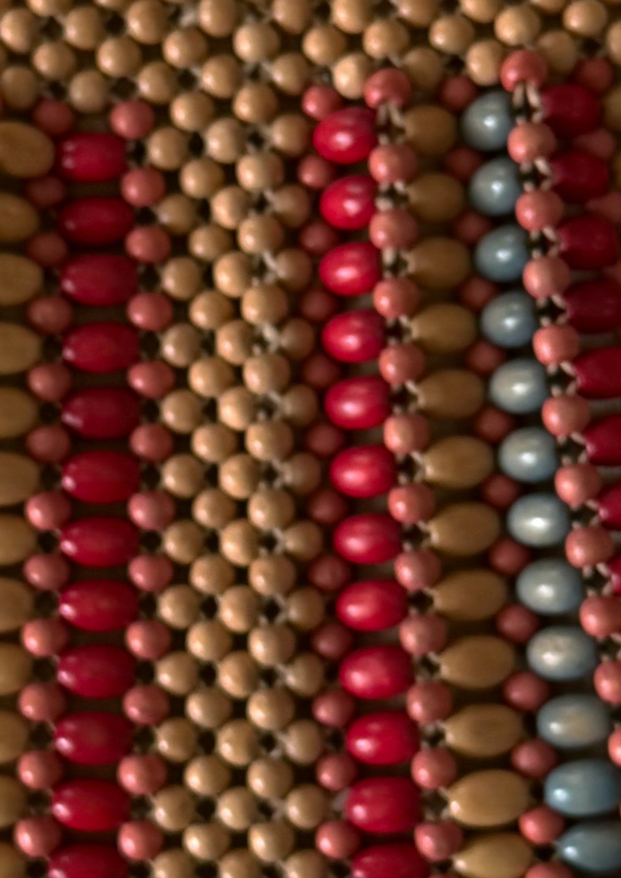 * Beaded all over in dark cream, light and dark pink and blue