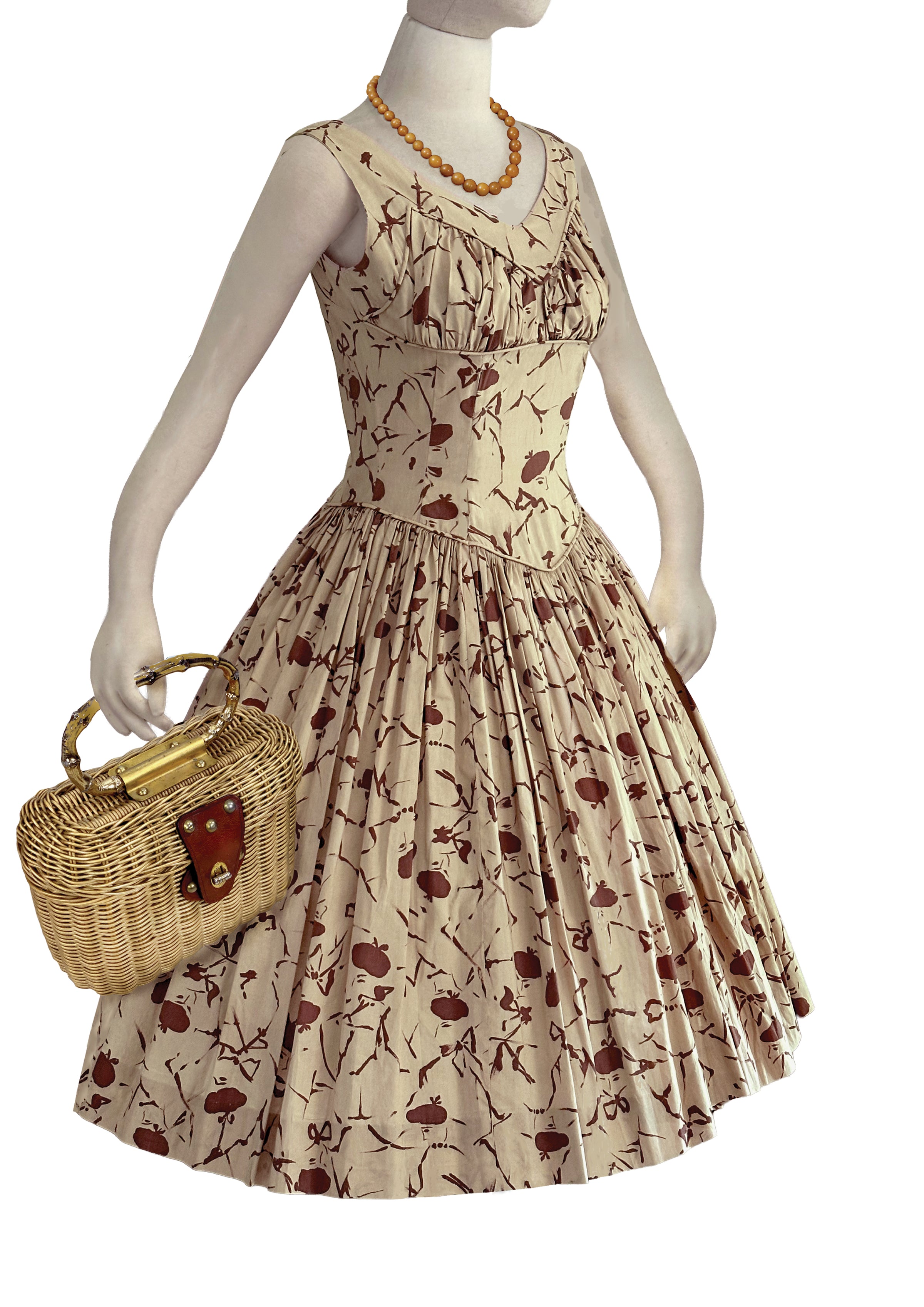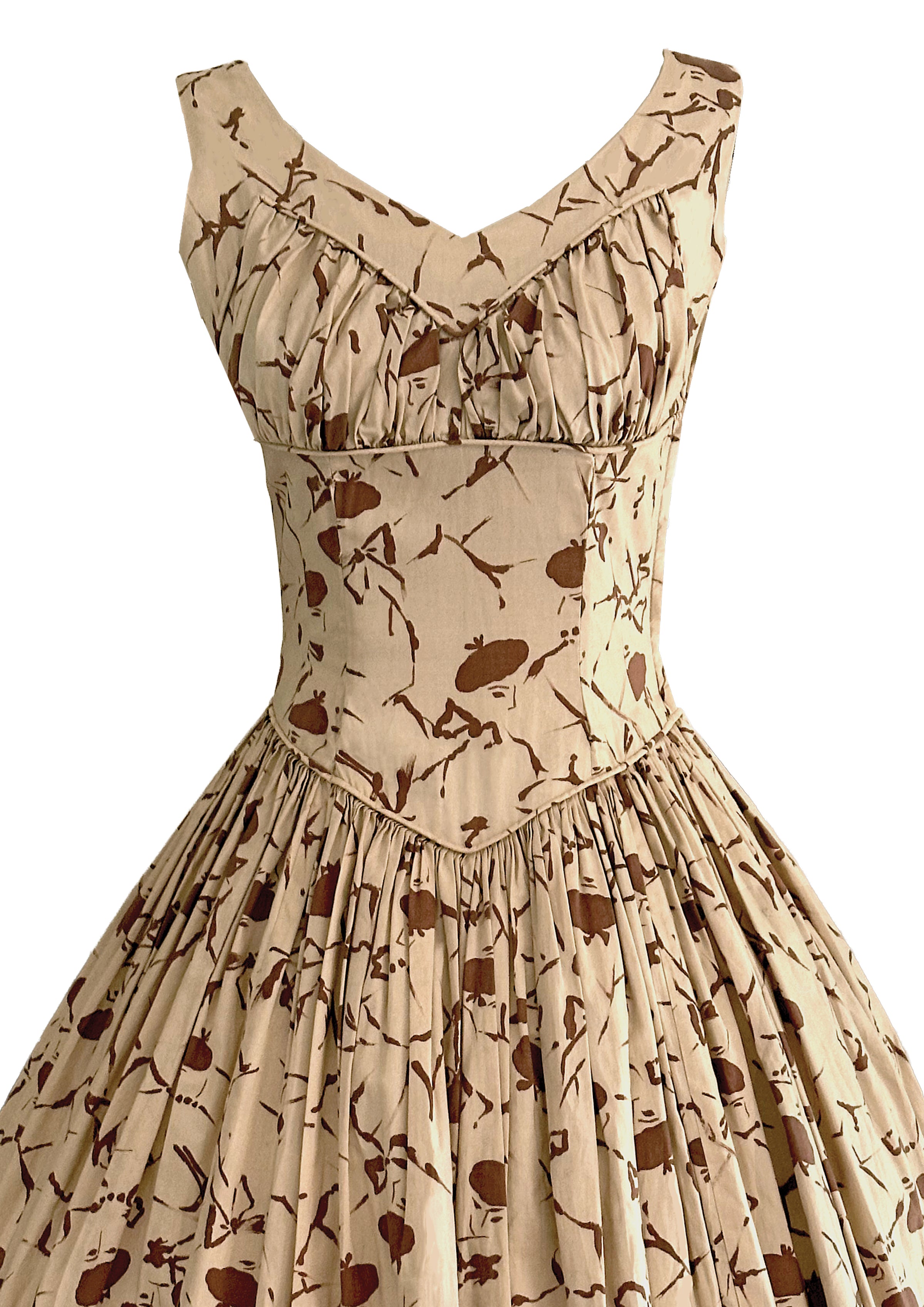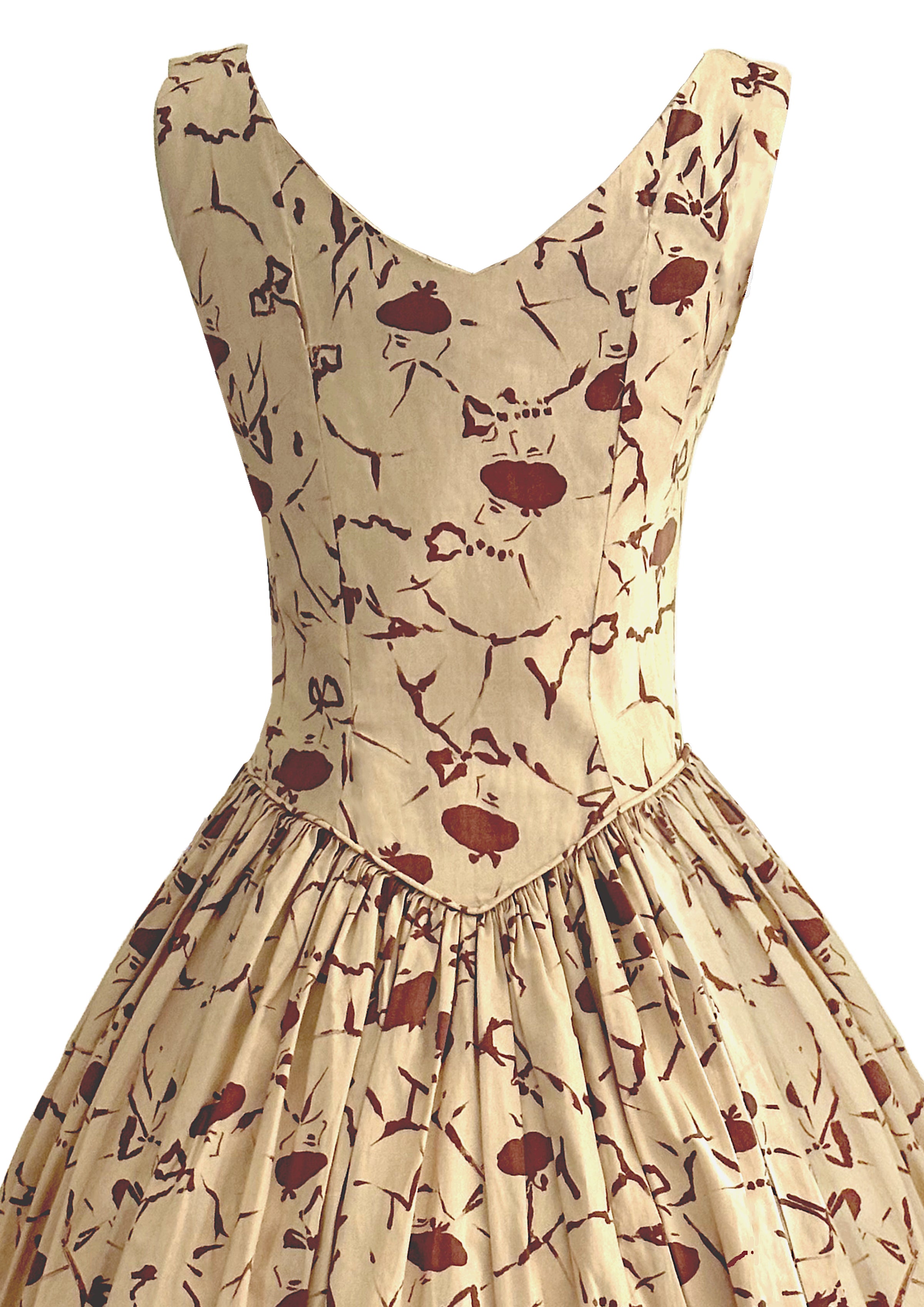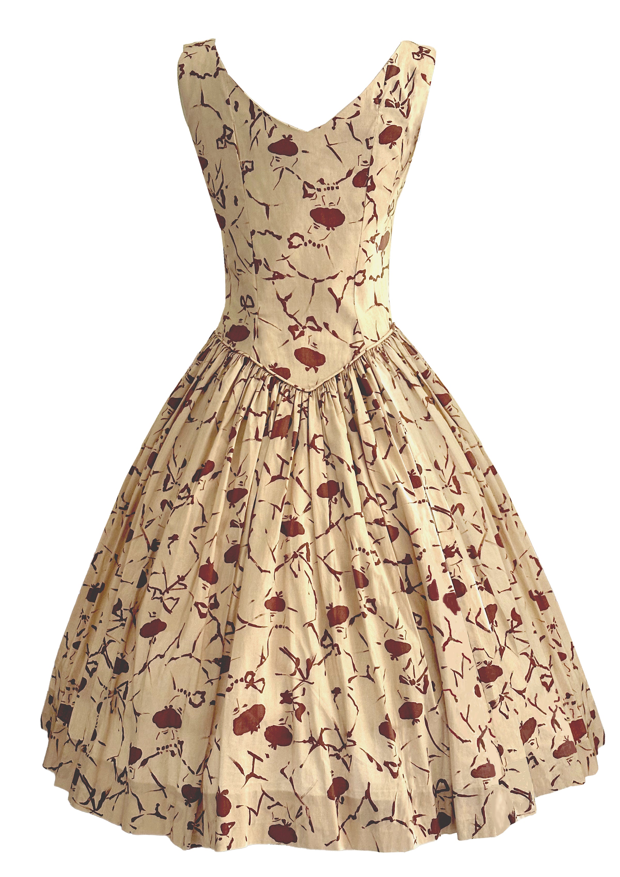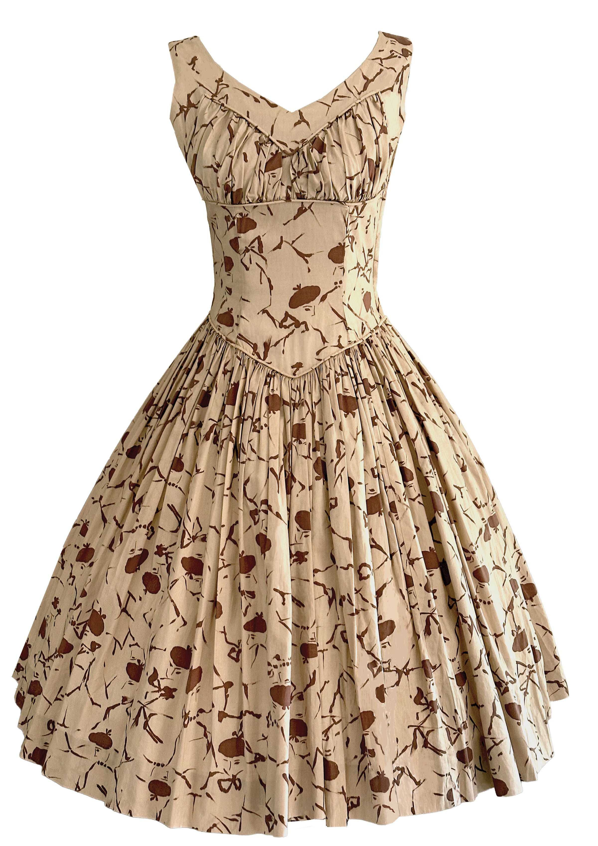 Vintage 1950s Mocha Novelty Dress with Parisienne Faces - New!