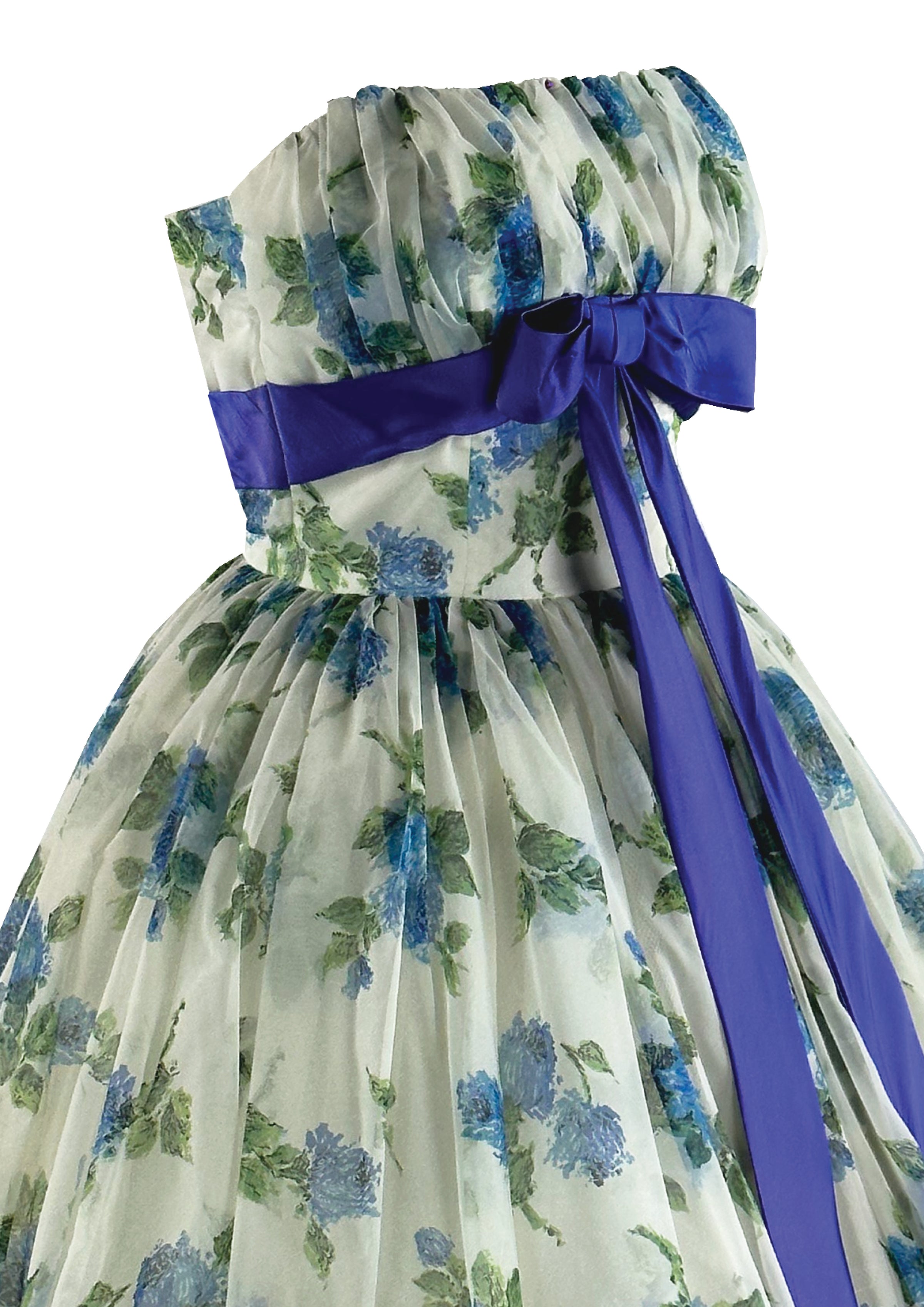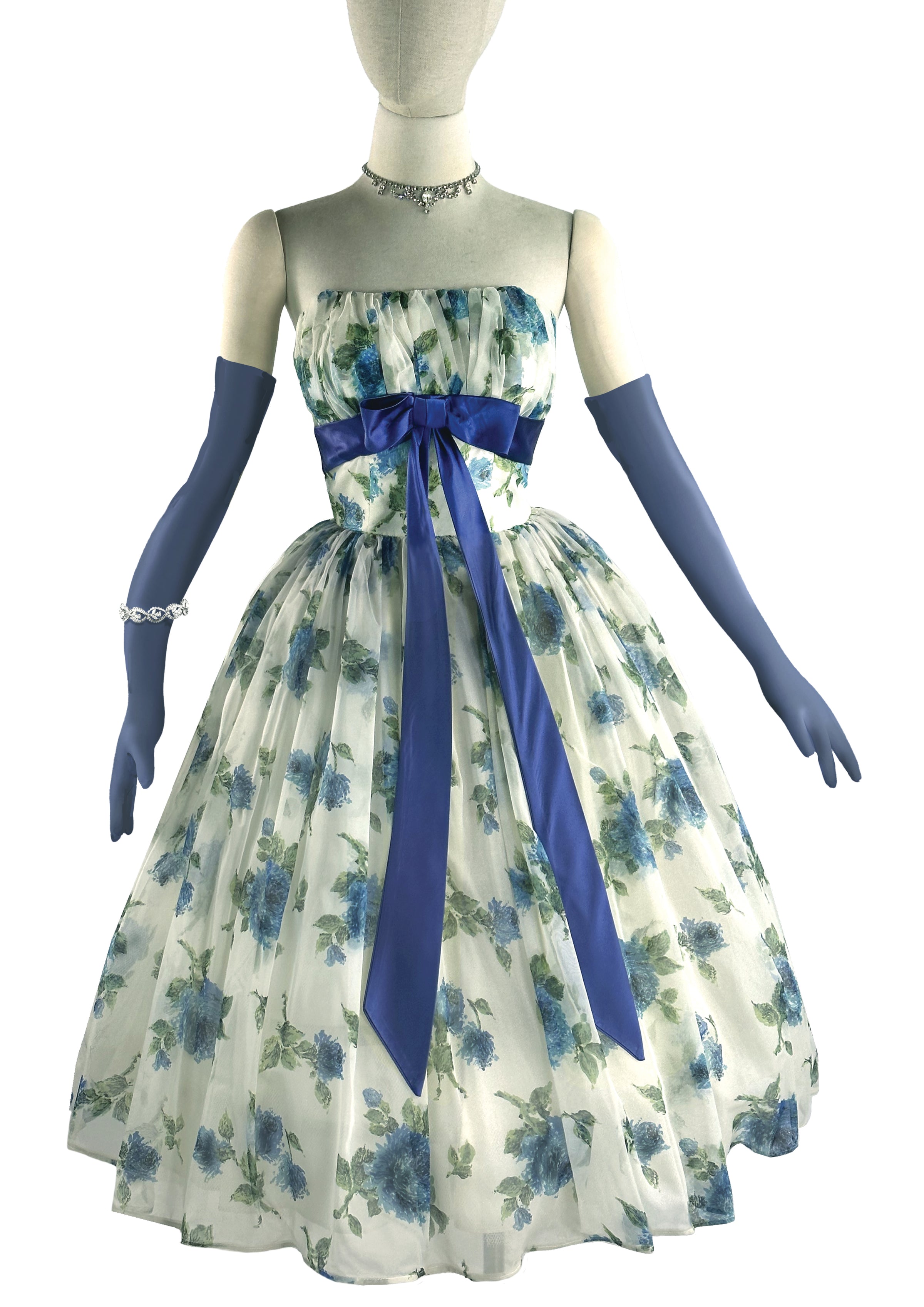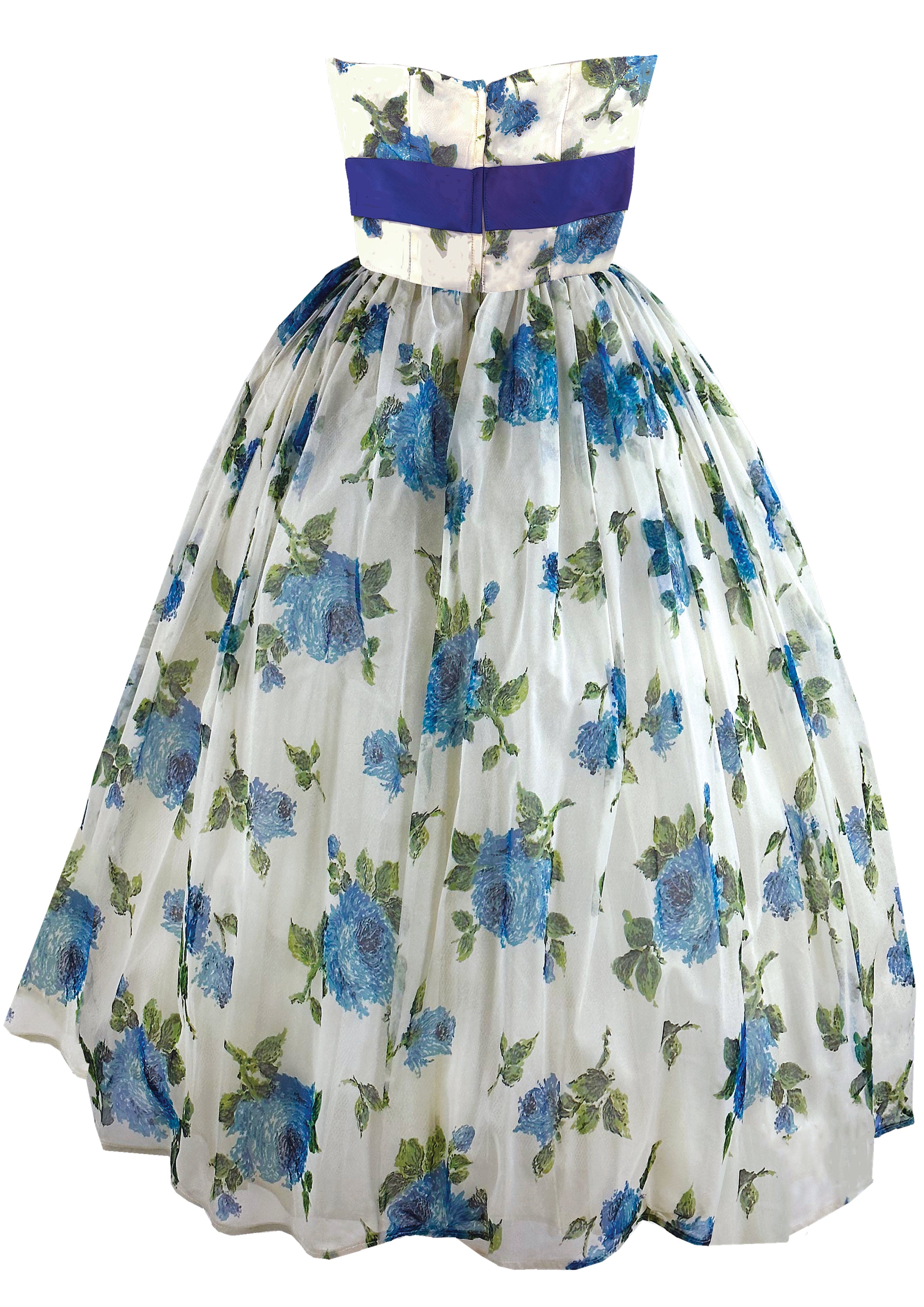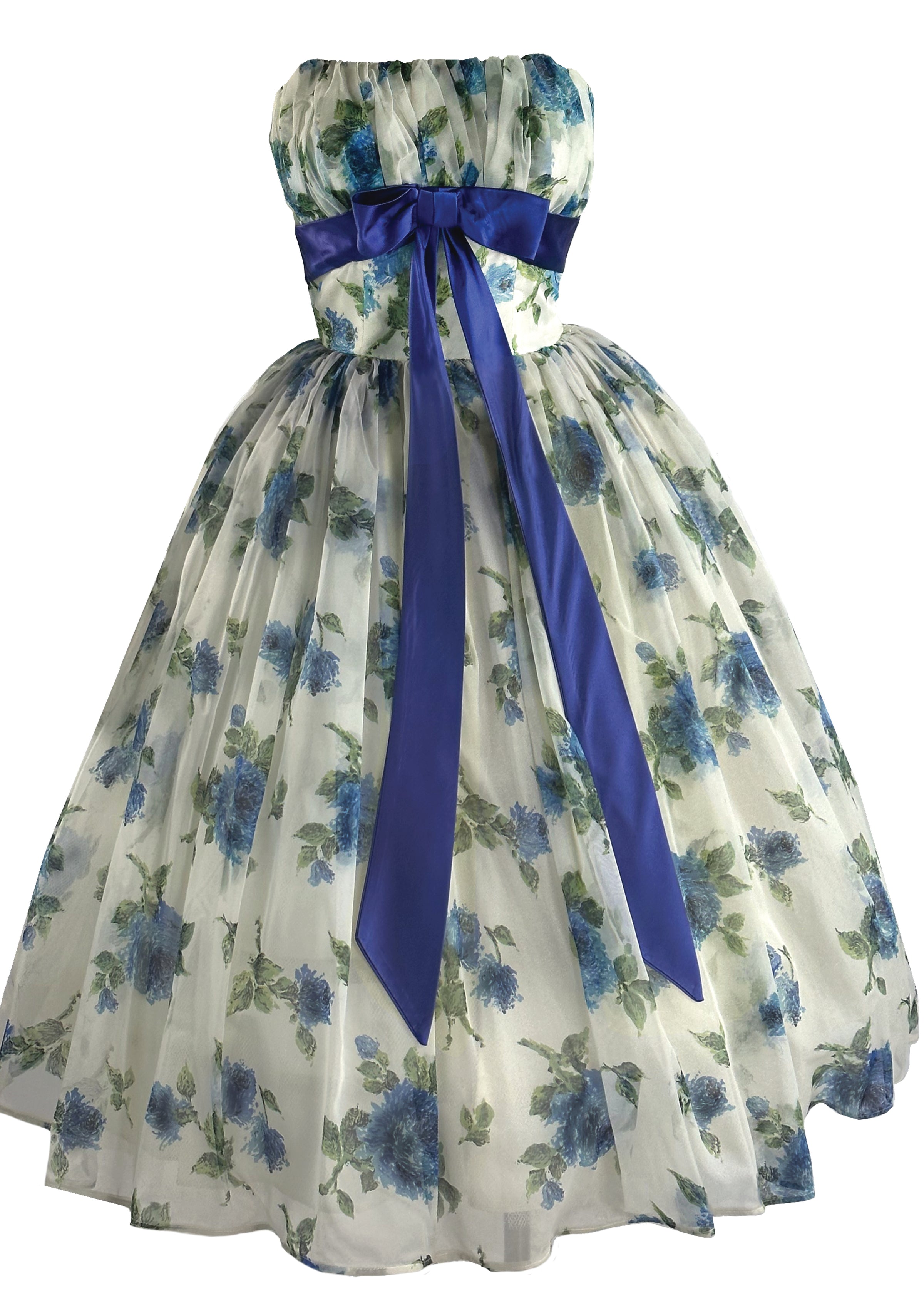 Vintage 1950s to Early 1960s Blue Roses Party Dress - NEW!