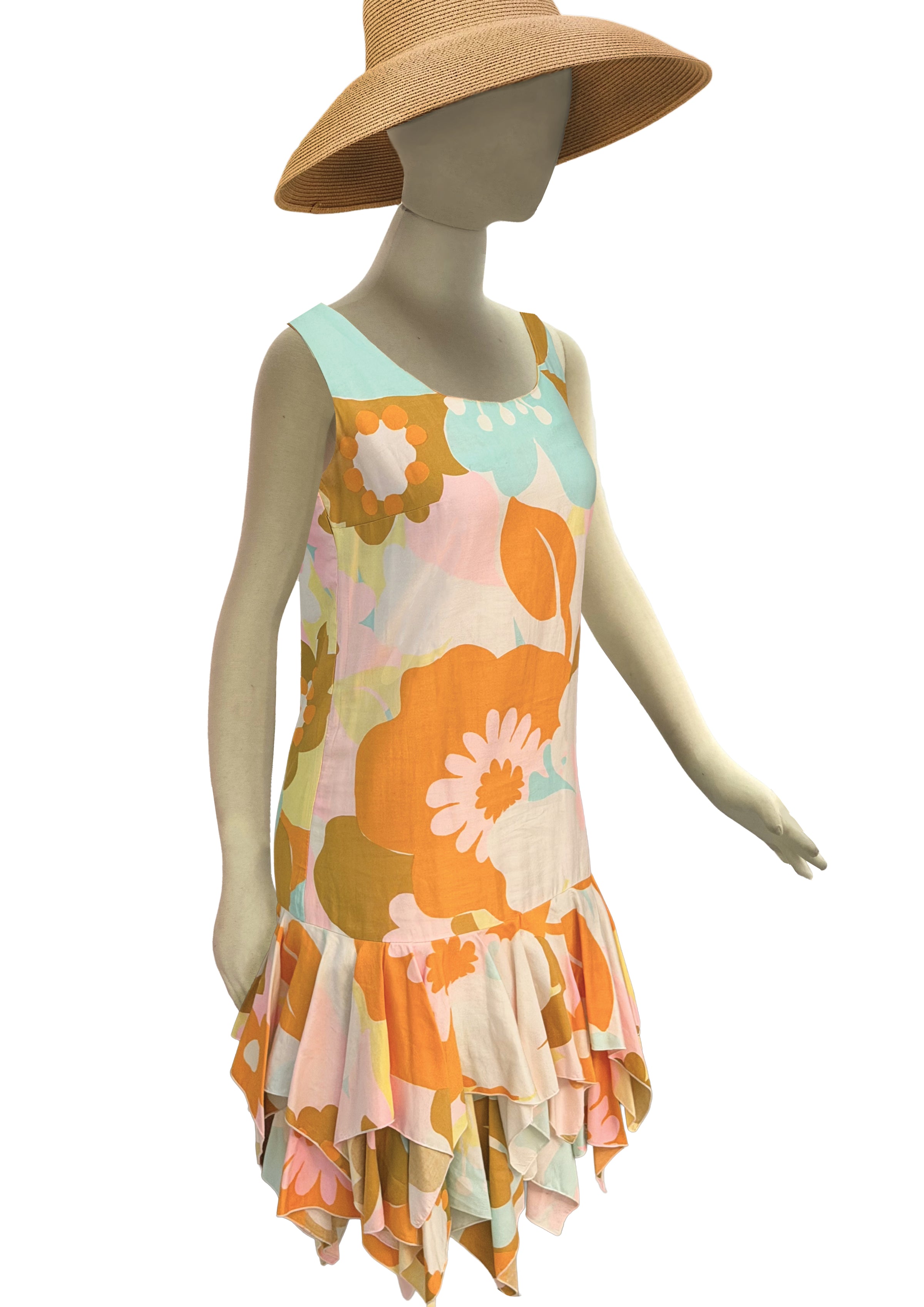 Vintage Sara's 1970s to 1980s Pastel Cotton Dress - New!
