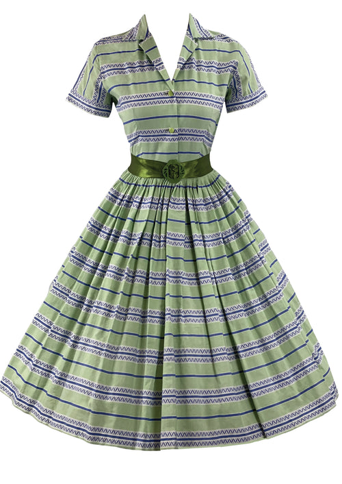 Late 1950s Blue and Green Striped Cotton Dress - NEW!
