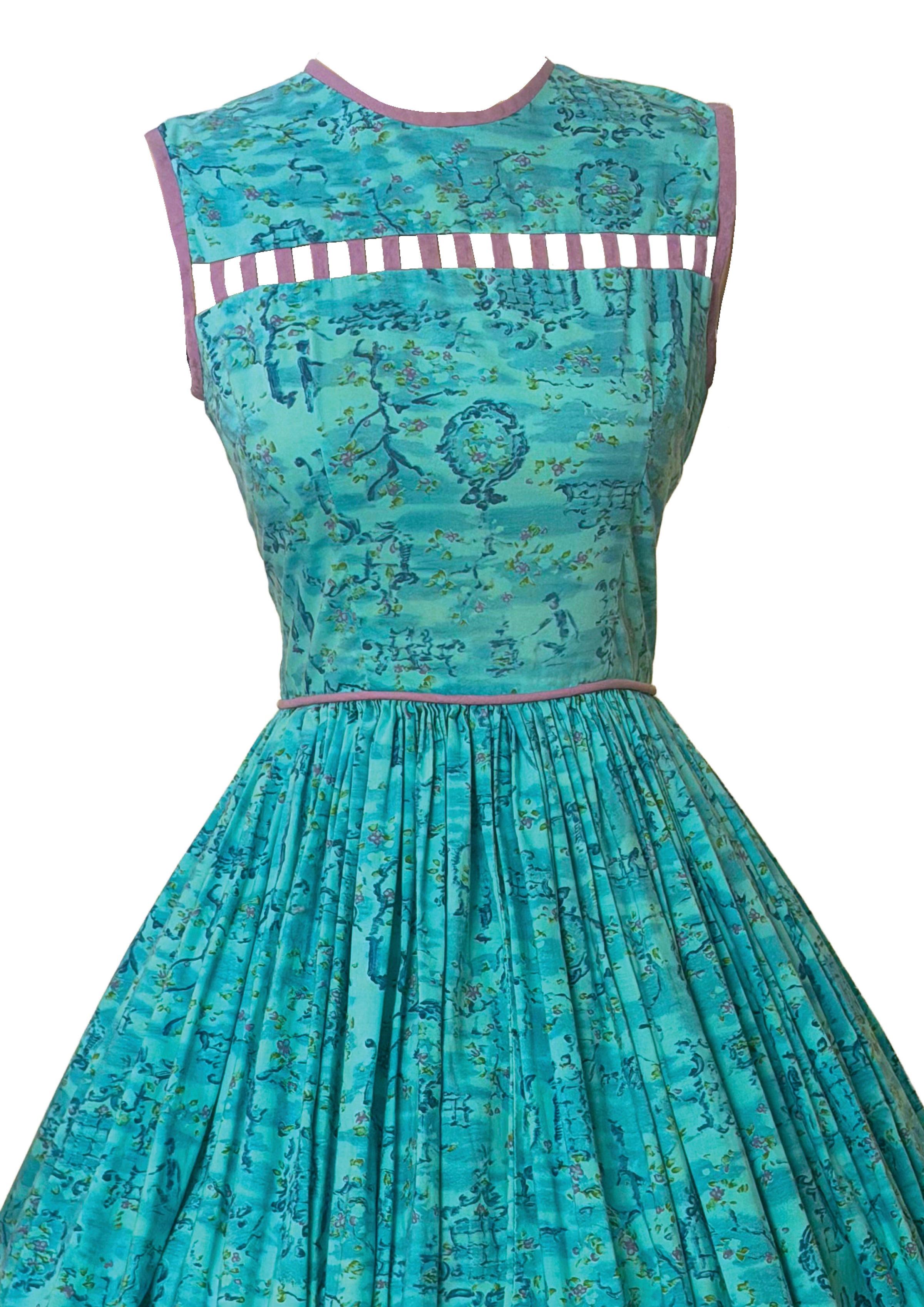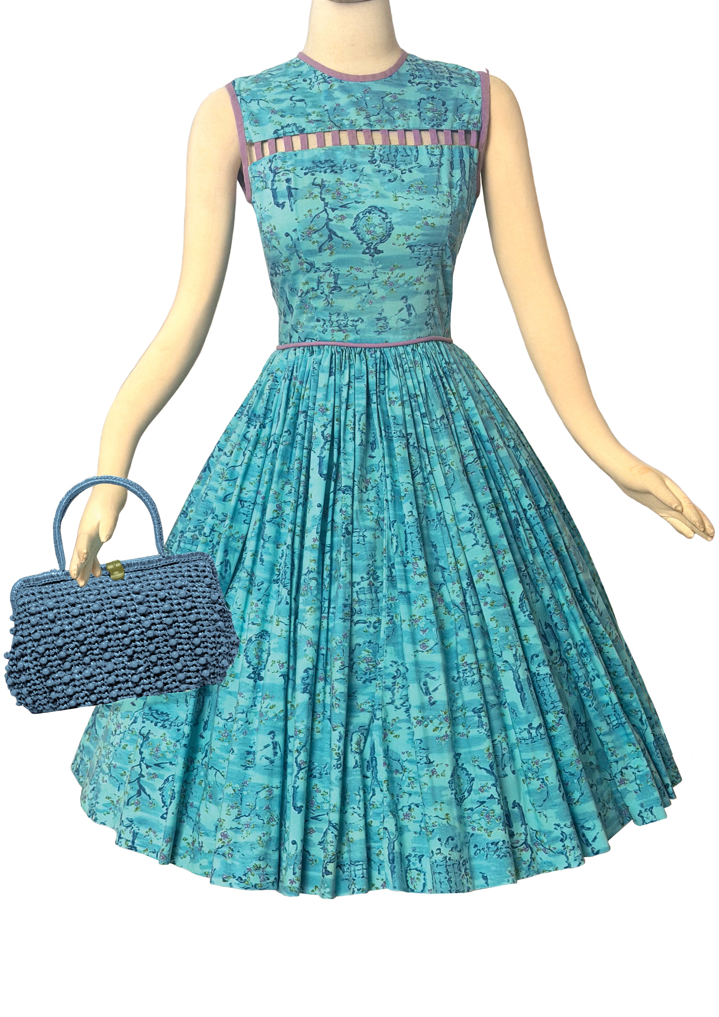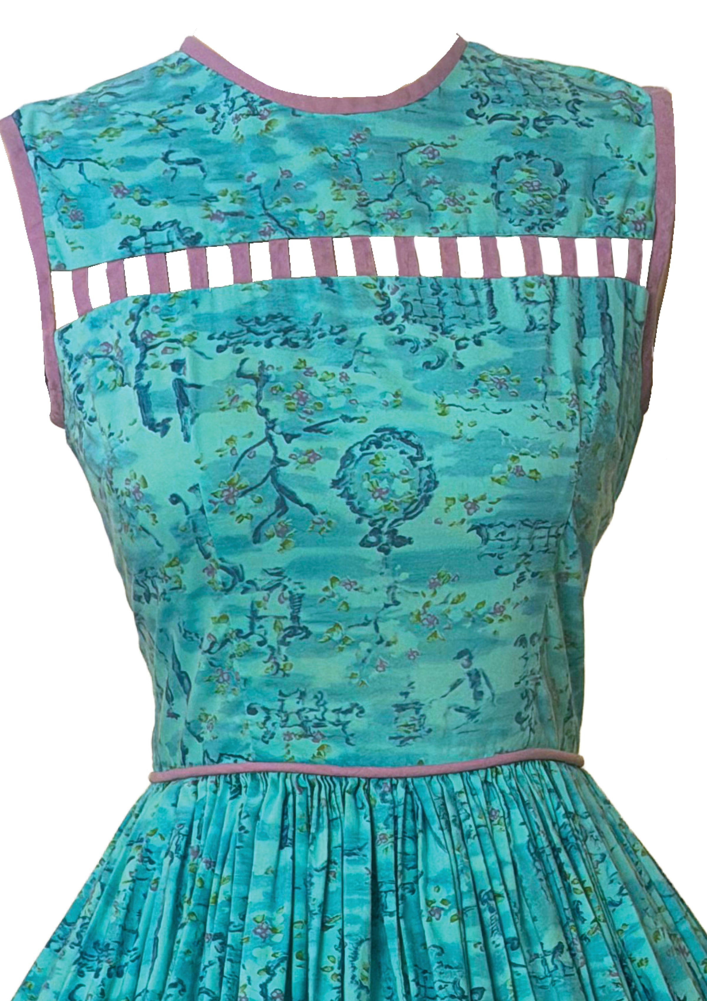 Vintage Late 1950s Turquoise Cotton Peephole Dress - New!