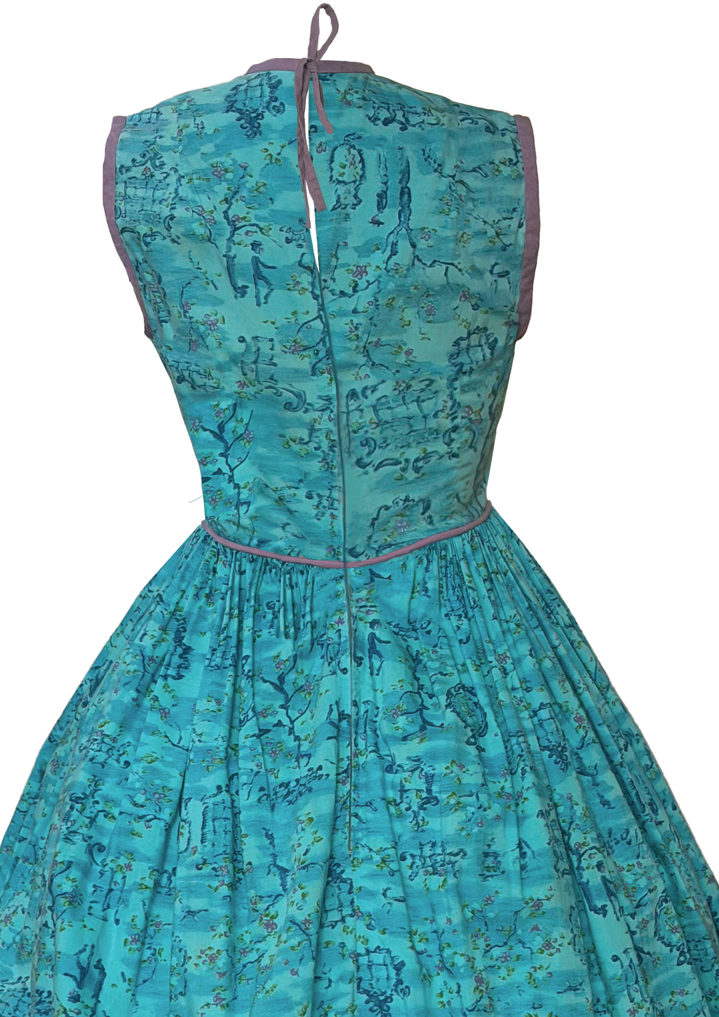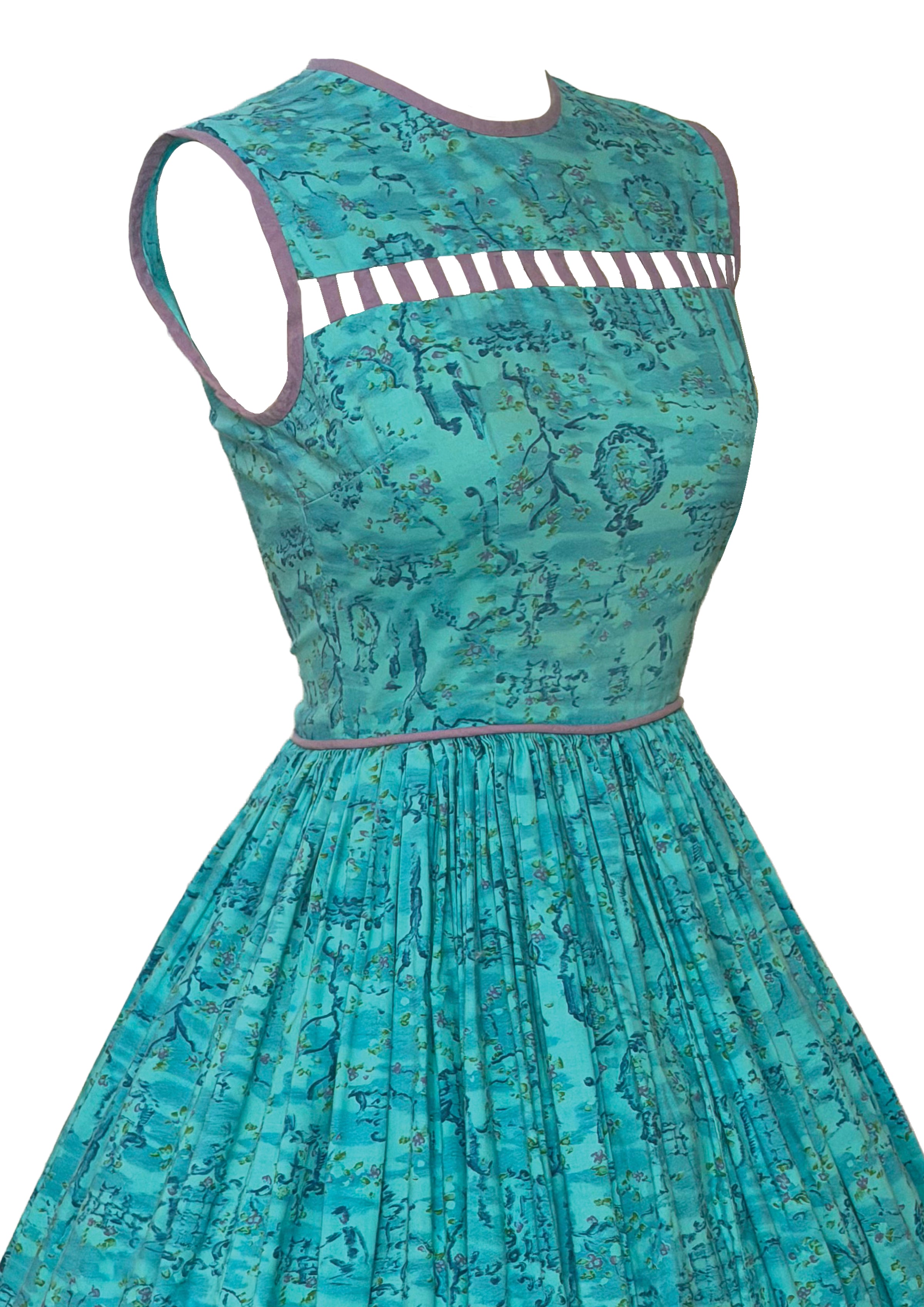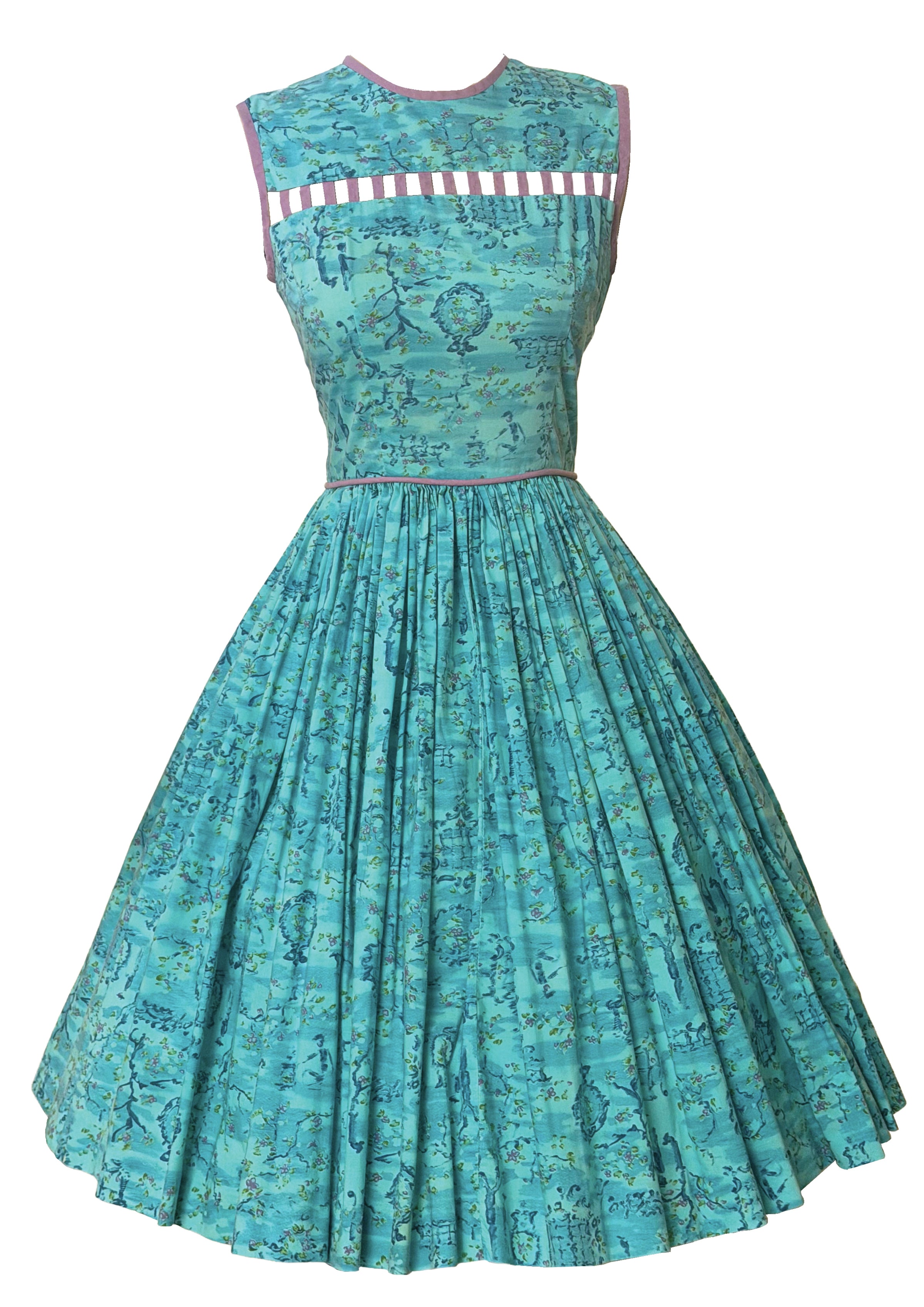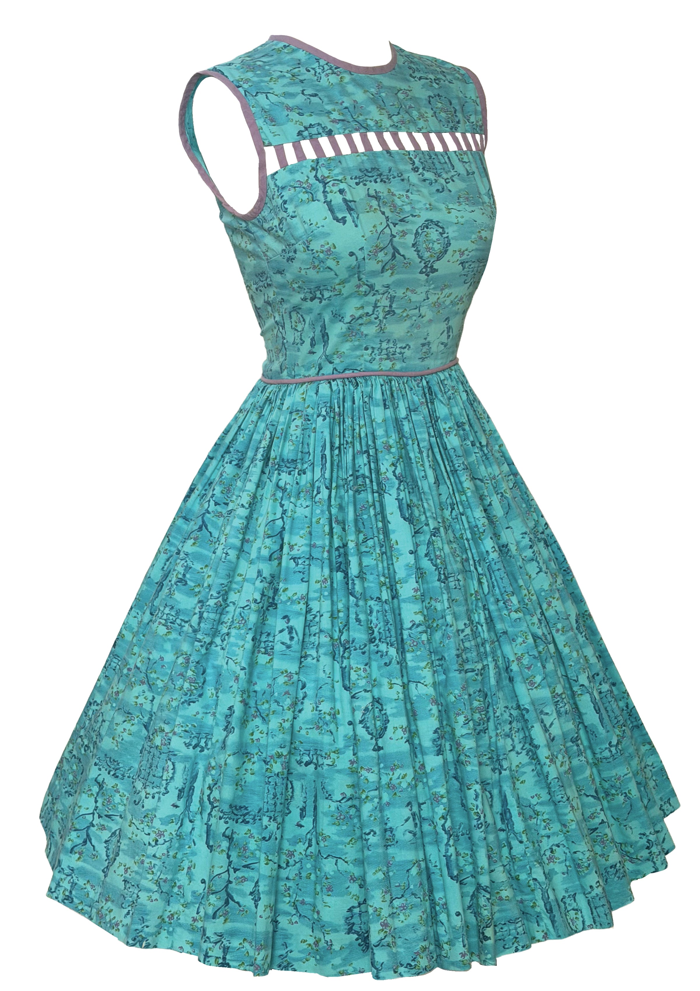 Vintage Late 1950s Turquoise Cotton Peephole Dress - New!